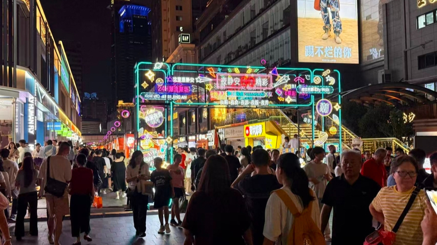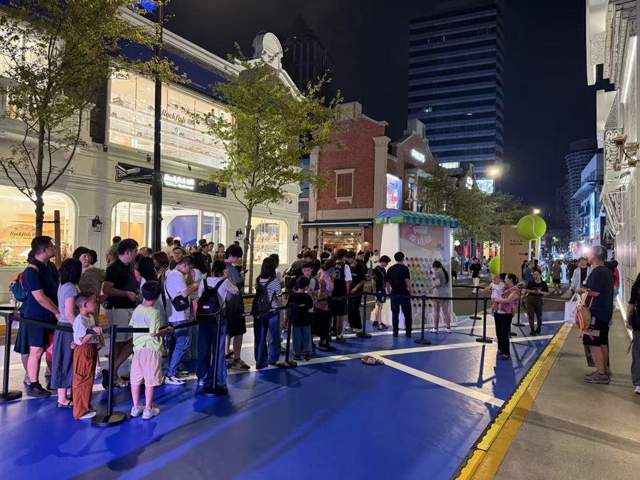 记者在晚上临近9点时看到,每个互动点位上还不断有人排队。来往的人流带动周边的餐饮门店生意看涨。一家沿街冰淇淋店的工作人员告诉记者,假期里客流明显增多,“每天晚上9点半以后还有很多人排队买冰淇淋。”