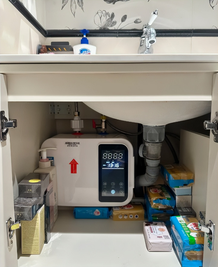 体积不大,安装位置灵活,往水槽下面一放,接上水电就能用。