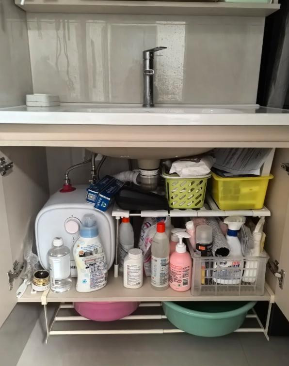 水槽下方原本要放净水器、垃圾处理器、清洁用品,再塞一个小厨宝,空间立刻变得拥挤。